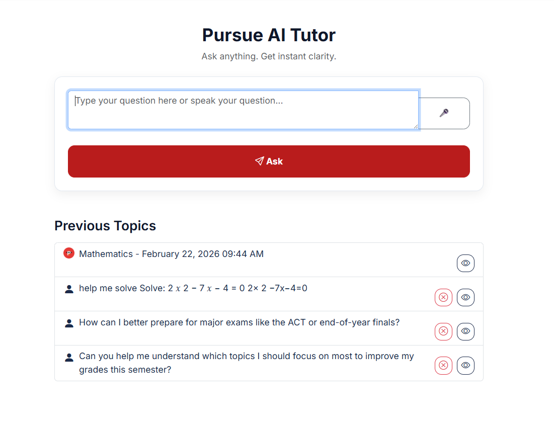 Every stronger grade, every higher test score, and every closed learning gap increases your acceptance options. Pursue builds the academic profile colleges and programs look for.