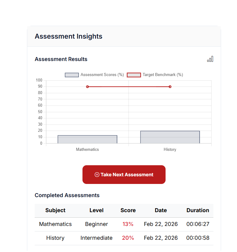 Adaptive gap assessments isolate the exact concepts limiting performance. Students stop reviewing what they already know and focus only on what improves grades and scores.
